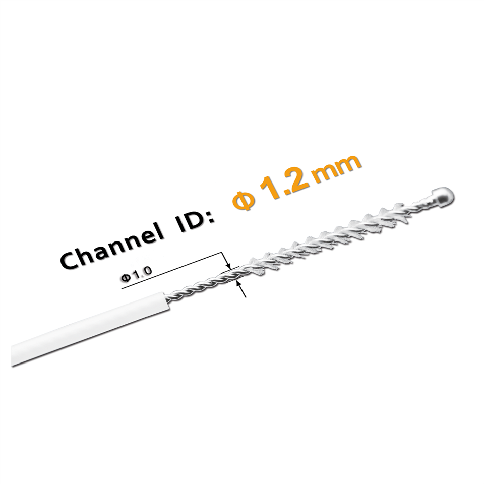 ● सुव्यवस्थित बेलनाकार ब्रश टिप नाजुक एनाटोमिकल संरचना आ एंडोस्कोपिक मार्ग के रक्षा के लेल पॉलिश समोच्च के विशेषता अछि{. एकटा घुमावदार. स लैस अछि।